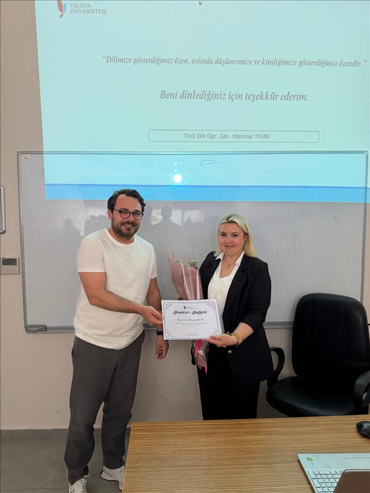 Spor Bilimleri Fakültesi tarafından düzenlenen akademik etkinlikler kapsamında, "Türkçenin Doğru ve Yerinde Kullanımı" konulu anlamlı bir seminer gerçekleştirildi. Ortak Dersler Bölümü öğretim elemanlarından Öğr. Gör. Mehtap Yığın’ın sunumuyla gerçekleşen etkinliğe, fakülte öğrencileri ve öğretim elemanları yoğun katılım gösterdi.