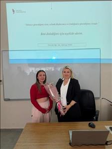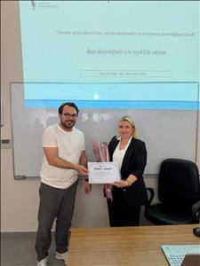 Seminerin sonunda, değerli sunumları ve katkıları dolayısıyla Öğr. Gör. Mehtap Yığın’a fakülte adına Spor Bilimleri Fakültesi Dekan Yardımcısı Dr. Öğr. Üyesi Abdurrahman Yaraş tarafından çicek ve teşekkür belgesi verildi.